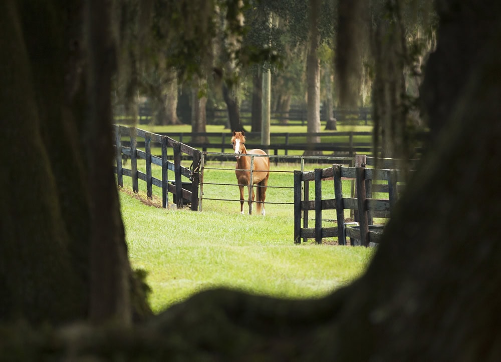 Hidden Oaks Farms is set on 30 lush acres in beautiful Ocala, Florida shaded by century-old granddaddy oak trees. The 16 horse paddocks, used for turn-out, are extremely spacious and have either run-in sheds or sufficient tree coverage to keep everyone dry on rainy days.
